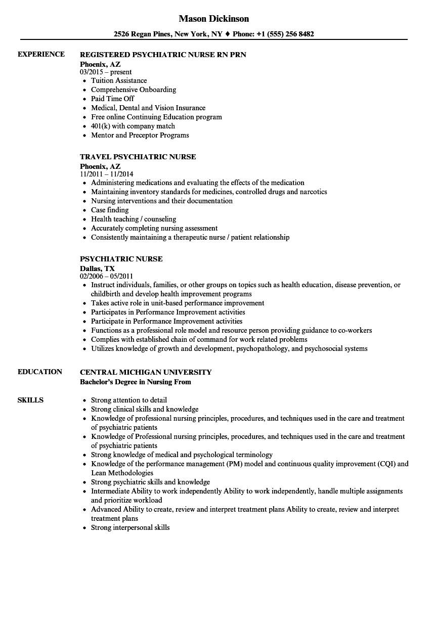 Psychiatric Nurse Resume Samples Velvet Jobs